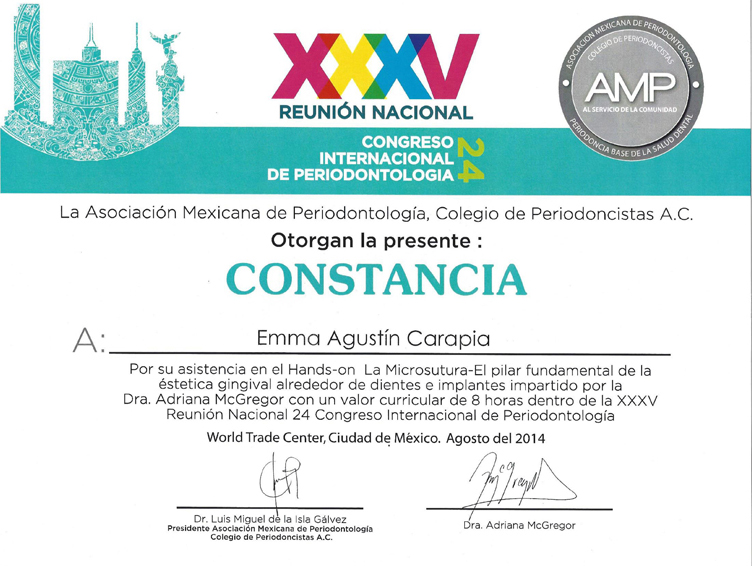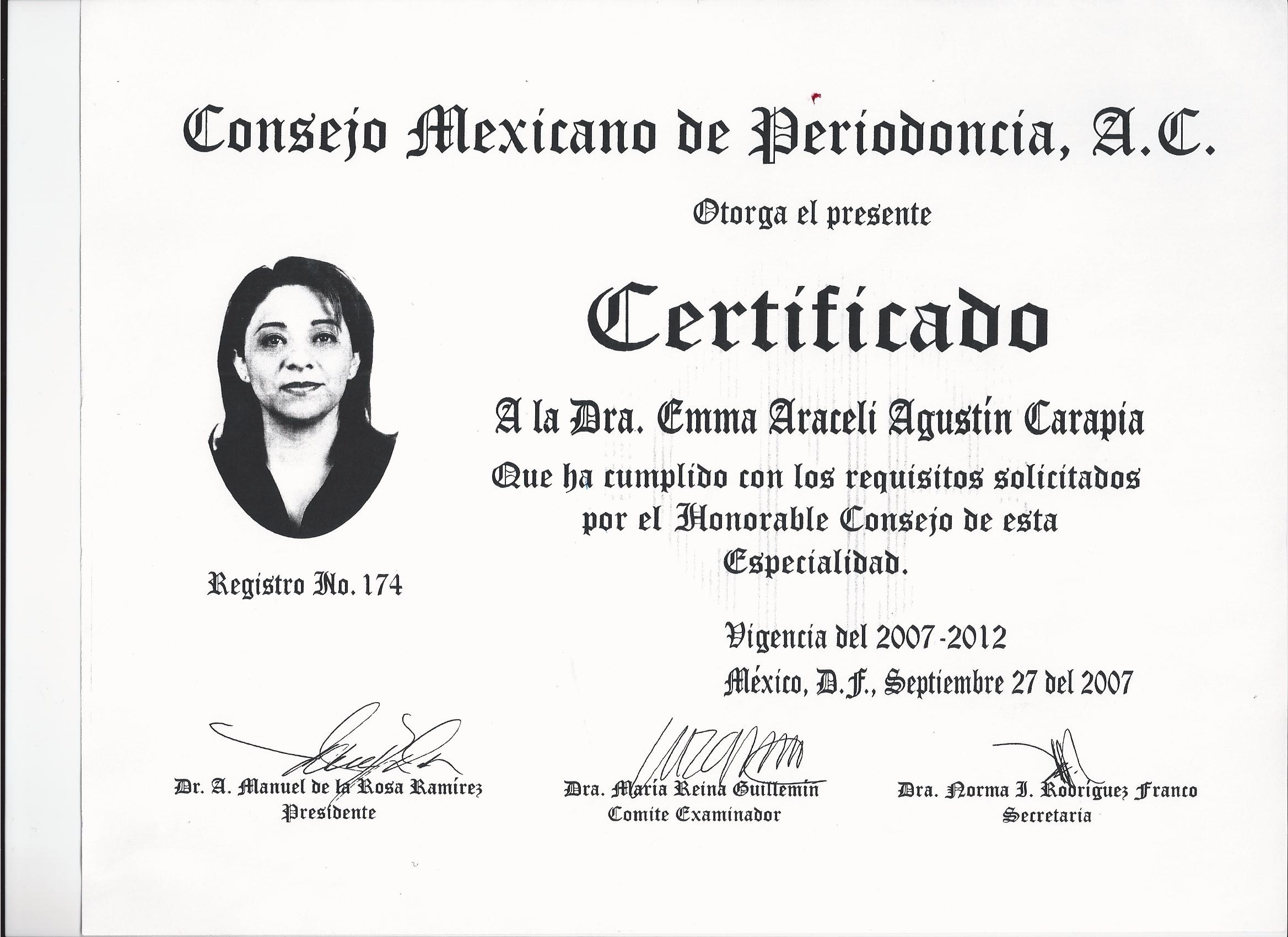 • Certificada por el Consejo Mexicano de Periodoncia desde 1998 a la fecha.