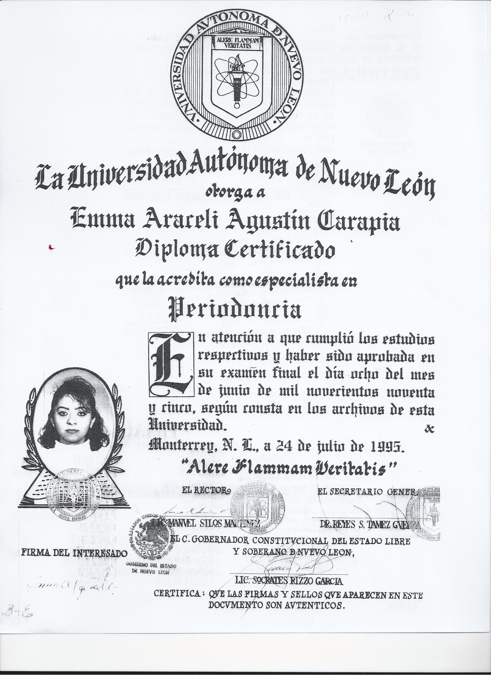 • Especialidad de Periodoncia, Universidad Autónoma de Nuevo León.